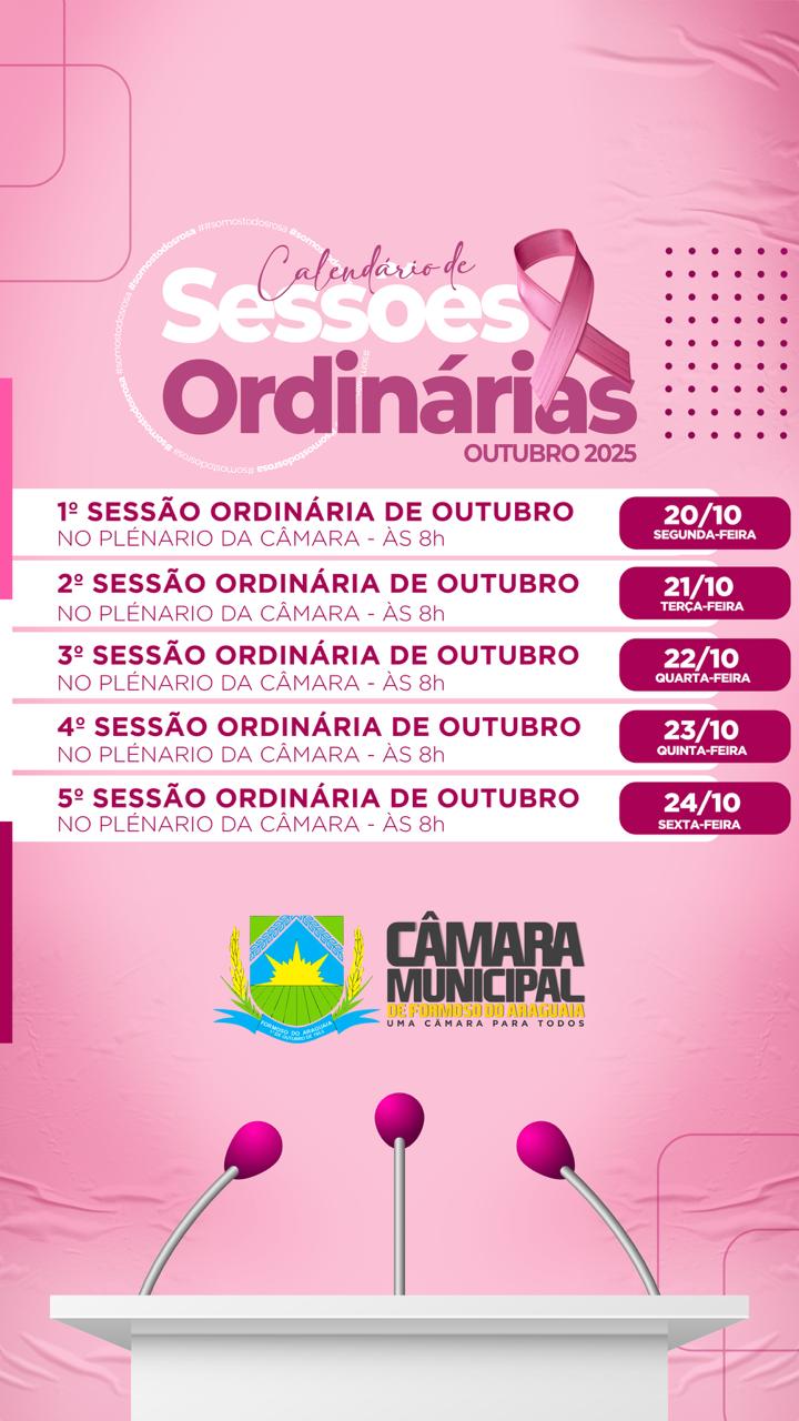 Calendário de AGENDA DAS SESSÕES ORDINÁRIAS DO MÊS DE OUTUBRO